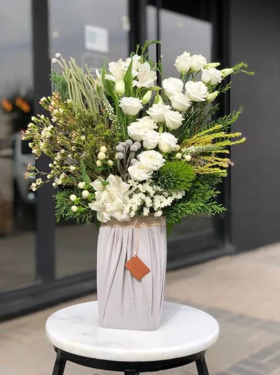 قاعدة اسفنجية بتغليف قماشي فاخر مع الورد الطبيعي
