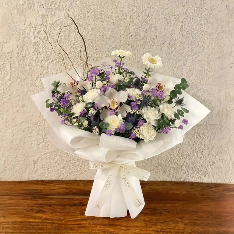 هذه الباقة ليست مجرد تجميع من الأزهار، بل هي عمل فني يعكس ذوقًا رفيعًا واهتمامًا بالتفاصيل.