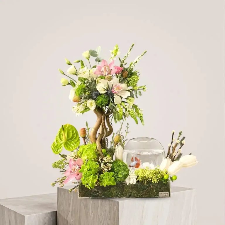 - فازة زجاجية من السمك الطبيعي: يتضمن فازة زجاجية مصممة بتنسيق مبتكر، تضمن أن تحتفظ بمظهرها الجميل لفترة طويلة وتضيف لمسة فنية لمكانك.