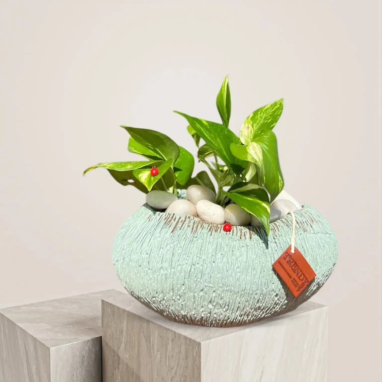 تتميز فازة نبات طبيعي هذه بنبتة البوتوس الطبيعية، اوالتي تُعرف بأنها من أفضل النباتات لتنقية الهواء الداخلي. هذا النبات سهل العناية ويضفي طابعاً منعشاً وأنيقاً على أي زاوية.