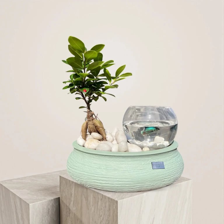 فازة نبات طبيعي تحتوي علي البونساي بالاضافة الي فازة السمك الطبيعي