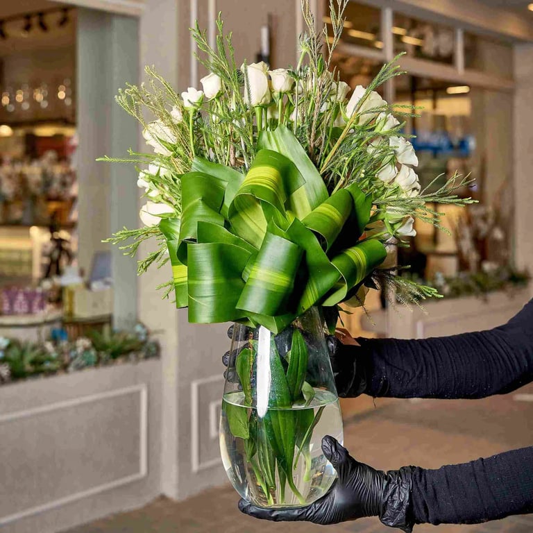 - يتم تنسيق الورود بشكل فني و إبداعي داخل فازة أنيقة مع اكسسوارات هولندية مميزة.