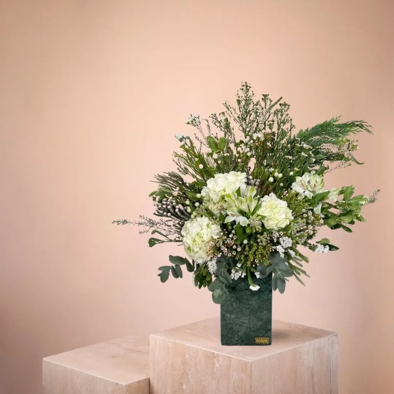 استمتع بجمال الهيدرنجا مع فازة ورد الهيدرنجا والاكسسوارات يتألق الهيدرنجا بألوانه الزاهية داخل الفازة، مصحوبًا بالاكسسوارات الفاخرة التي تضفي لمسة من الاناقه .