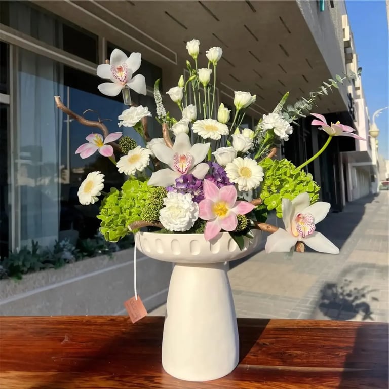 اكتشفوا الرقي والأناقة التي لا تُضاهى مع فازة ورد طبيعي من تفصيل ترندي روز، المصممة خصيصاً لتكون قطعة فنية بحد ذاتها.