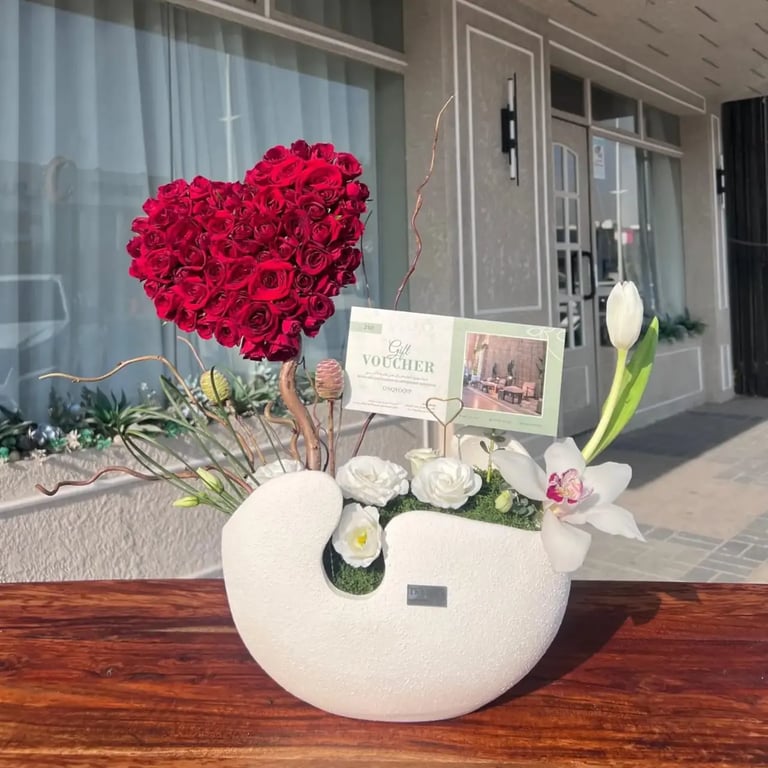 أرسل رسالة حب خالصة بأسلوب استثنائي مع فازة ورد طبيعي أنيقة، بتفصيل حصري من ترندي روز. هذا التصميم يجسد العاطفة والرقي في آن واحد.