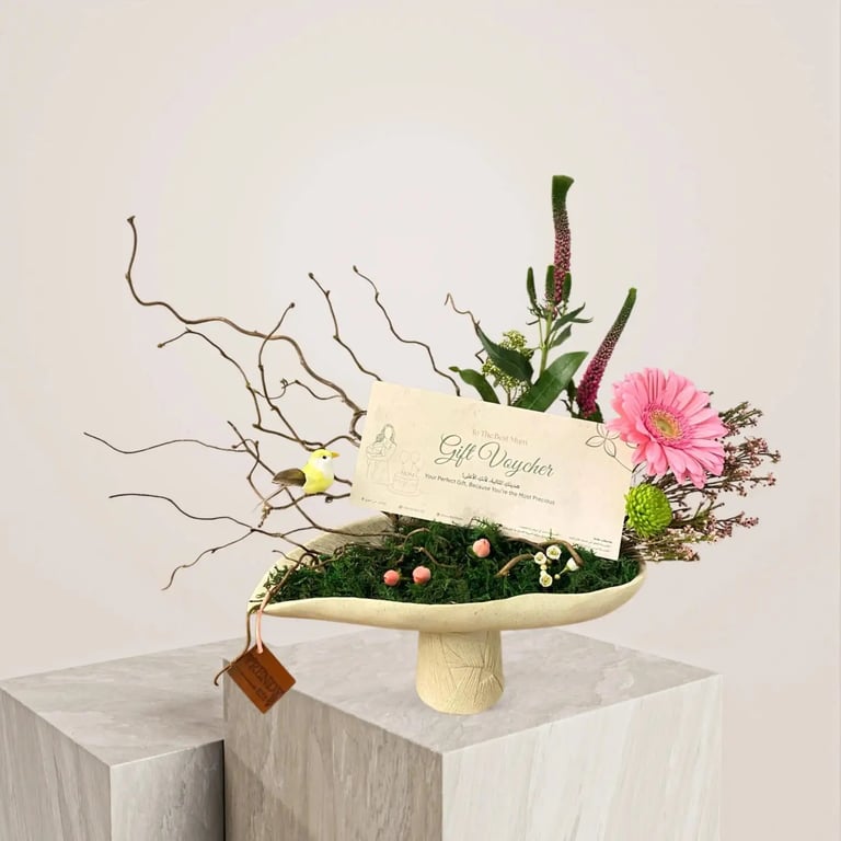 فازة ورد طبيعي رائعة تحتوي علي الاكسسوارات مع امكانية اضافة قسيمة جويس هاندز سبا