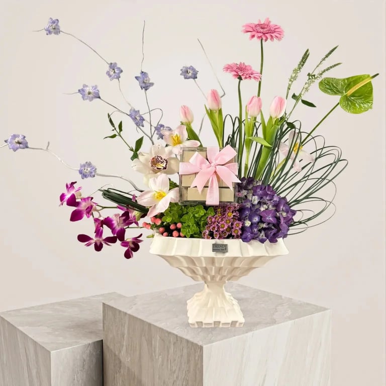 إنها فازة ورد طبيعي تجمع بين الجمال البصري والمذاق الرفيع، وهي الخيار الأمثل للمناسبات السعيدة والتهاني.