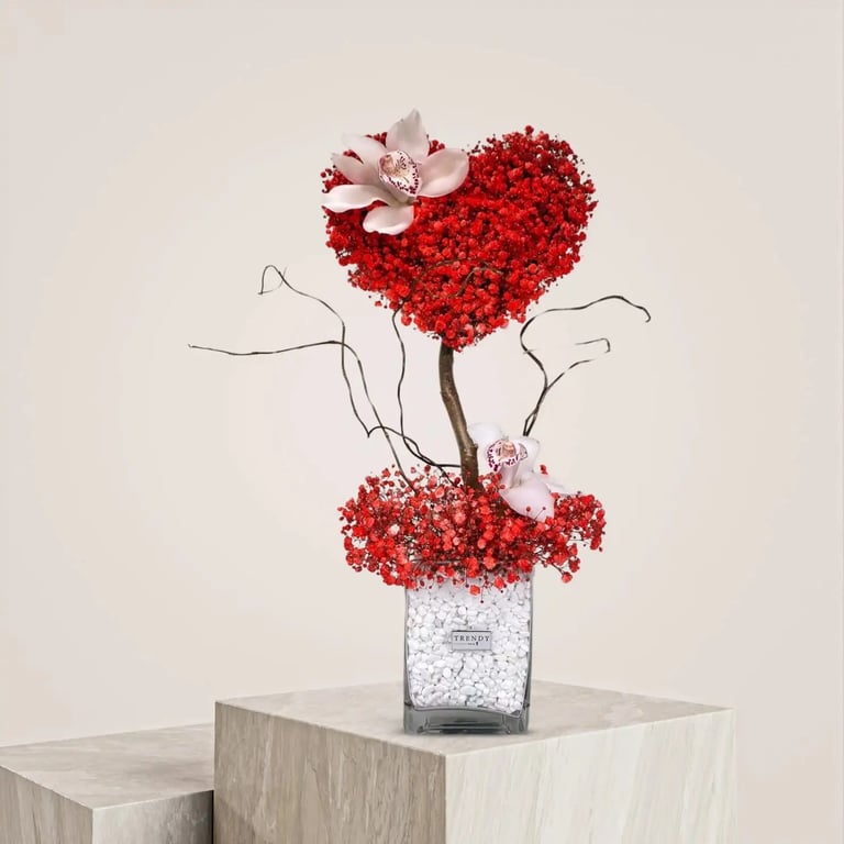 أضيفي لمسة من البهجة والرقي على أي مكان وأي مناسبة مع فازة ورد زجاجية أنيقة مليئة بزهور الجيبسوفيليا البيعية بألوانها الجذابة،هدية مثالية لعيد الحب.
