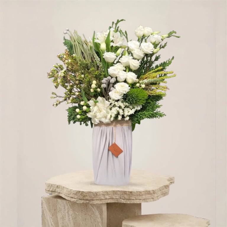 قاعدة اسفنجية بتغليف قماشي فاخر مع الورد الطبيعي